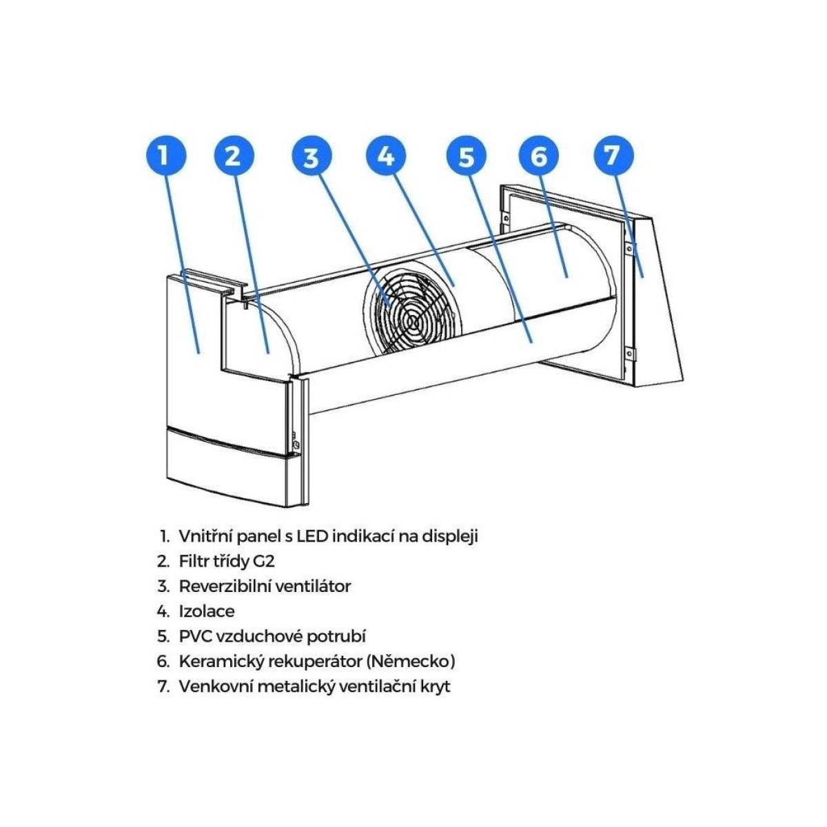 Ventoxx Harmony Smart je lokální rekuperační jednotka navržená pro efektivní větrání obytných prostor s minimálními tepelnými ztrátami. Díky účinnosti zpětného získávání tepla až 94 % a nízké spotřebě energie 1,5–4,7 W se řadí do energetické třídy A, což ji činí ideální volbou pro domácnosti, kanceláře i komerční prostory. Její kompaktní design a jednoduchá instalace umožňují umístění do široké škály prostředí, zatímco moderní ovládací prvky poskytují maximální komfort.
