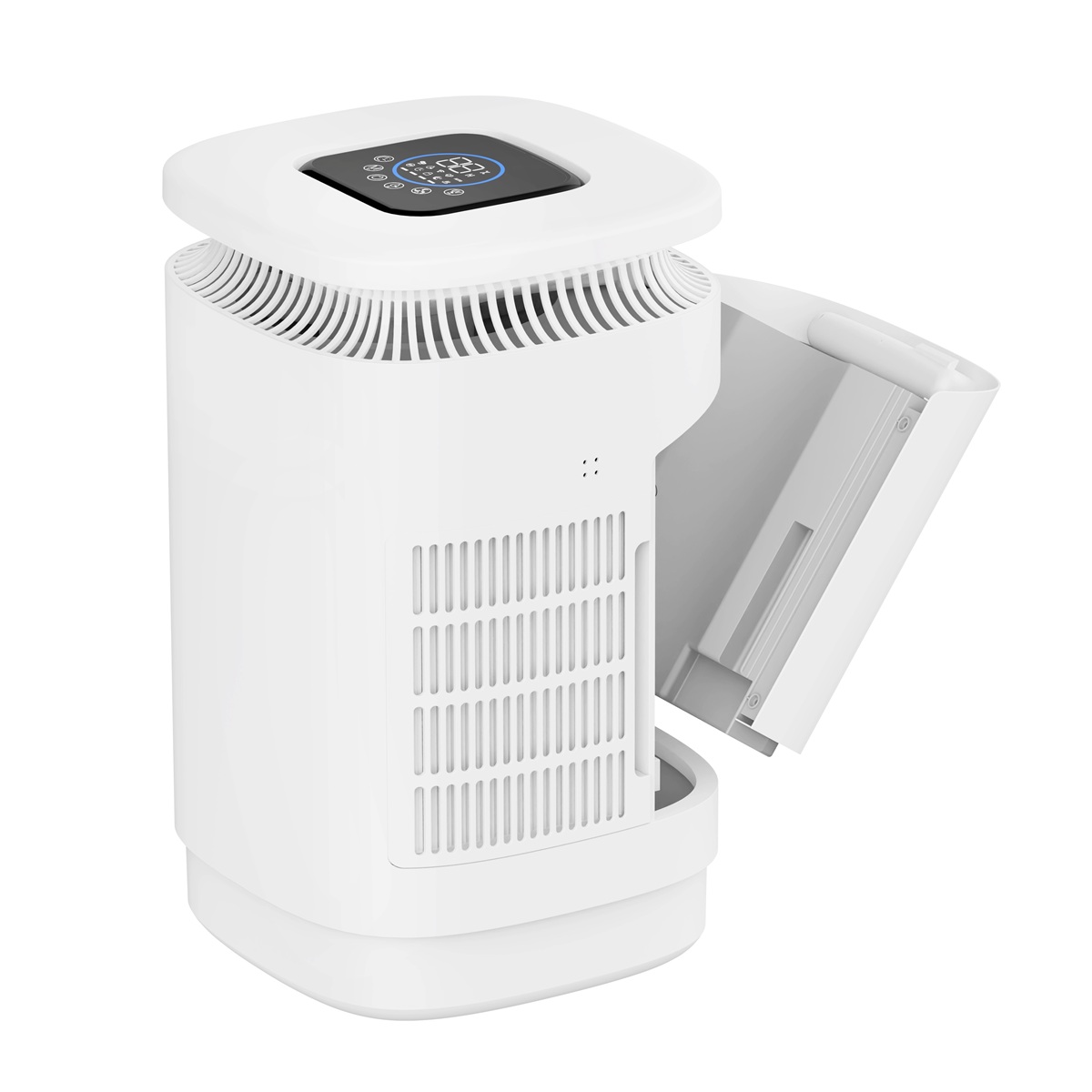 Zařízení je vybaveno dotykovým ovládacím panelem, který umožňuje snadné nastavení úrovně vlhkosti (40–80 % RH), rychlosti ventilátoru a časovače s rozsahem 1–12 hodin. Zařízení je také možné pohodlně ovládat pomocí mobilní aplikace TUYA. Automatický režim přizpůsobí výkon aktuálním podmínkám v místnosti – vyšší vlhkost snižuje rychlost ventilátoru, nižší ji naopak zvyšuje.