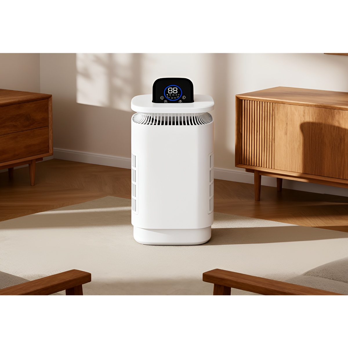 AERIUM SA2404 kombinuje několik účinných technologií, které společně zlepšují kvalitu vzduchu v interiéru. UV lampa a dva HEPA filtry pomáhají zachytávat bakterie, prach i další škodlivé částice, zatímco rotující diskový válec průběžně pohlcuje nečistoty ze vzduchu. Výsledkem je čistší a zdravější prostředí pro každodenní pobyt.