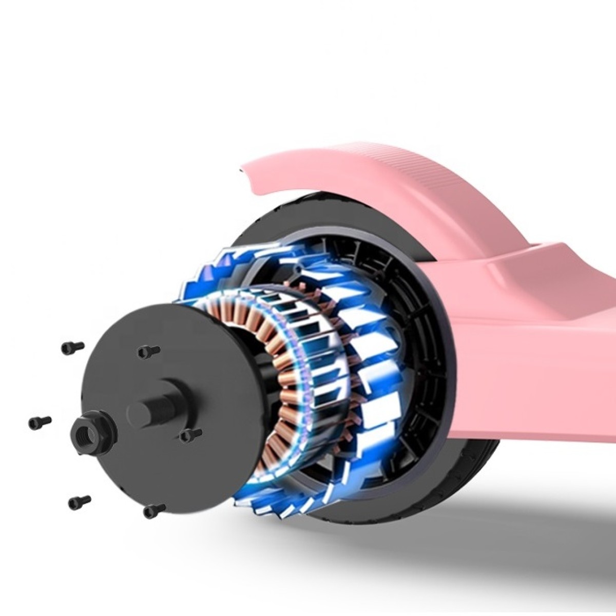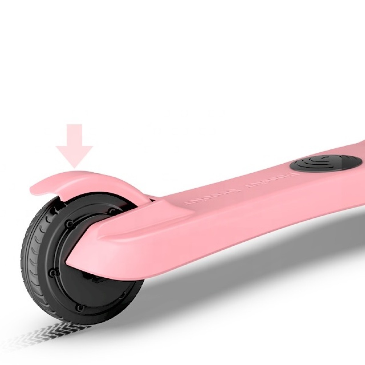 Růžová koloběžka AERIUM E-FOX je vybavena bezpečnou zadní brzdou, která se aktivuje stisknutí zadního blatníku nohou. Spolehlivý blatník ochrání Vaše ratolesti před blátem a špínou z cest. Elektrokoloběžky ES jsou navrženy s nízkým těžištěm, což usnadňuje manévrovatelnost a zvyšuje pocit jistoty. V zadním kole je zabudován 100 W elektrický motor, který má maximální rychlost téměř 10 km/h.