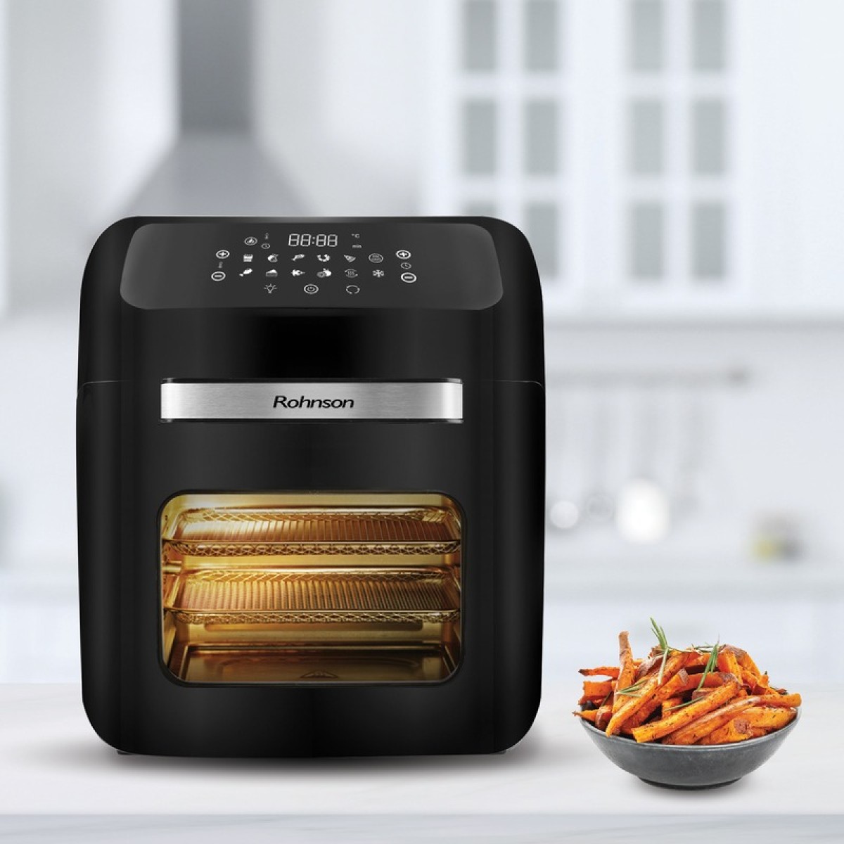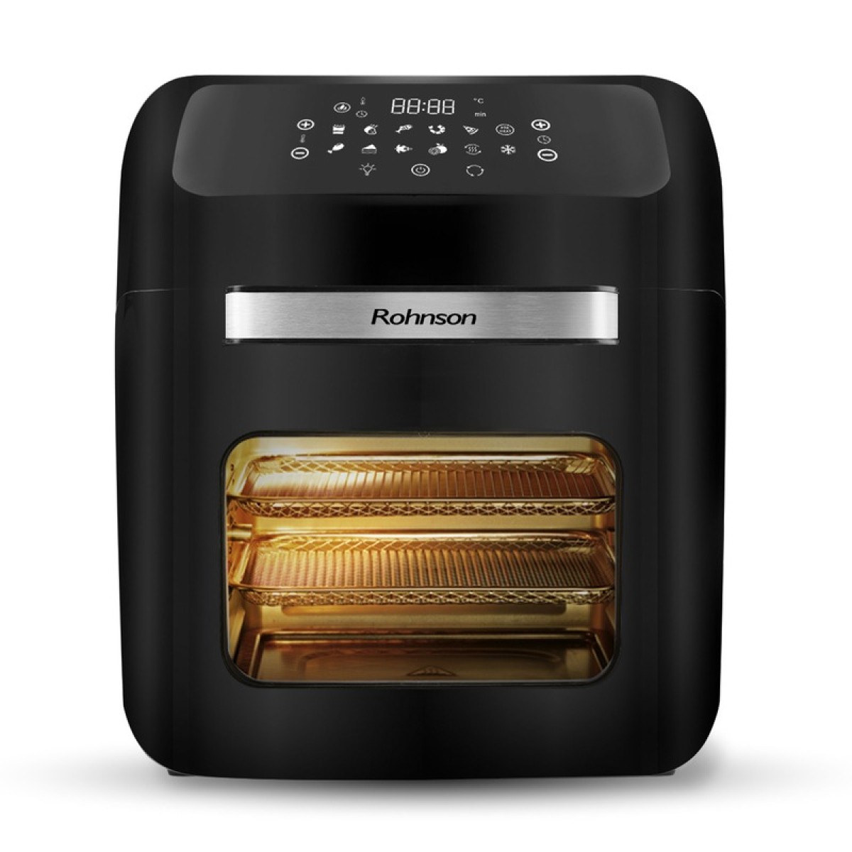 příkon 1800 W, časovač, rovnoměrný topný systém, objem nádoby 12 l, nastavení teploty, ochrana proti přehřátí, funkce sušení ovoce