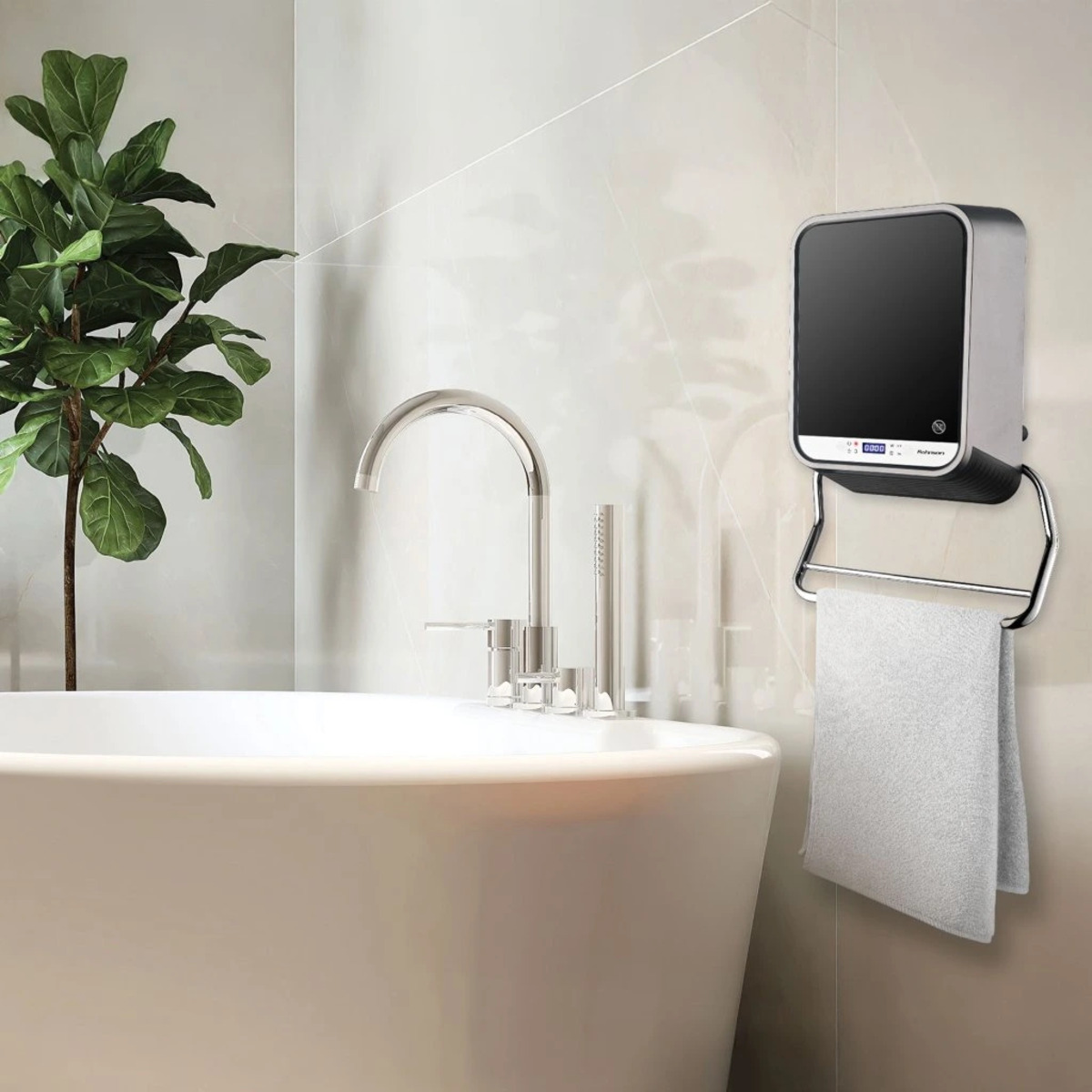 Keramické nástěnné topidlo Rohnson R-6070 s výkonem 2000 W a 2 stupni výkonu (2000 W / 1300 W) nabízí rychlé vytápění až pro 26 m². Je vybaveno LED displejem, dálkovým ovládáním, časovačem (denní a týdenní), funkcí detekce otevřeného okna, dětským zámkem a integrovaným držákem na ručníky. Nastavitelná teplota 10–49 °C, IP23 krytí a ochrana proti přehřátí zajišťují bezpečný provoz.