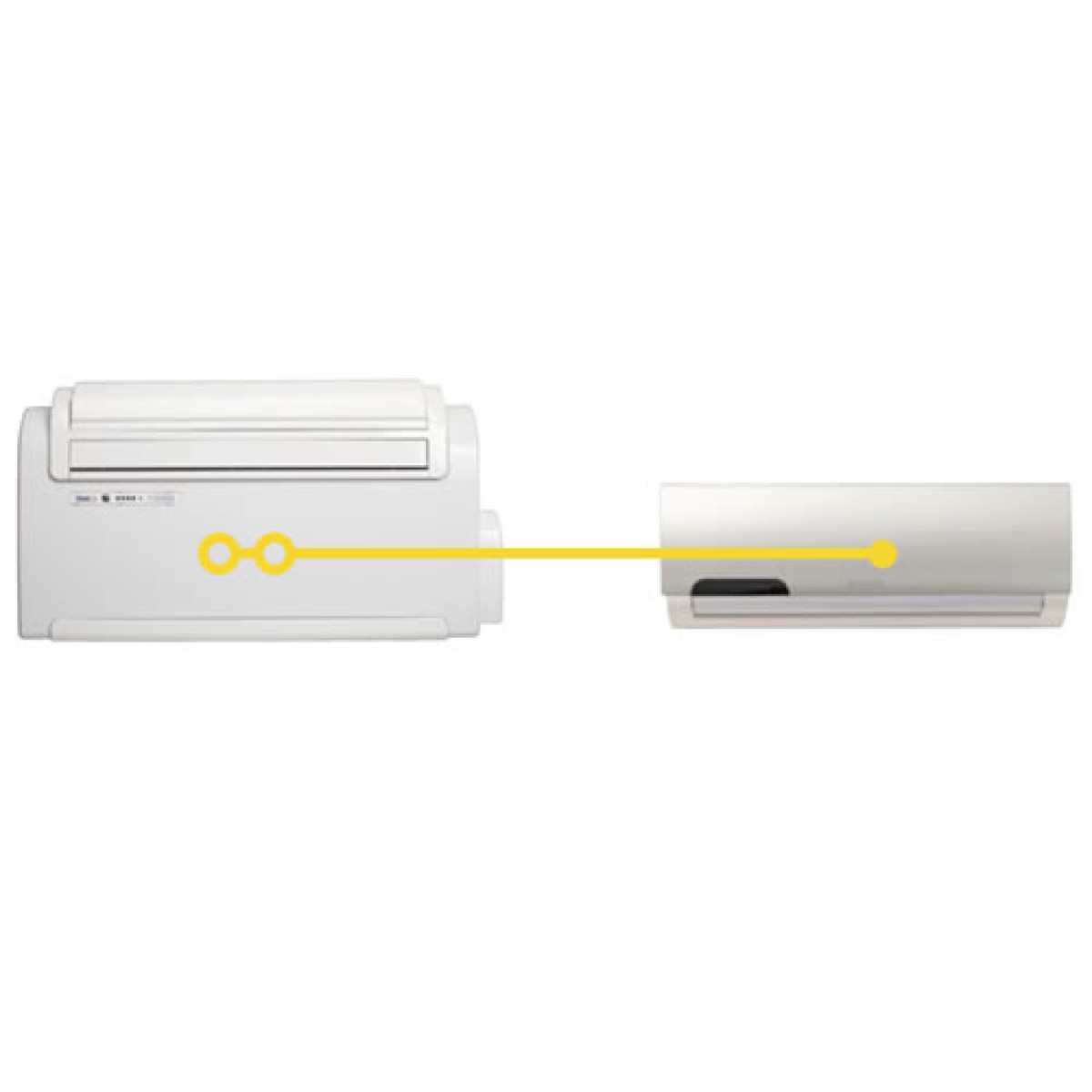 Pro instalaci jsou třeba dva otvory do zdi, není ale potřeba instalovat vnější jednotku. Díky chladícímu výkonu až 2,6 kW u hlavní jednotky a 2,5 kW u jednotky vedlejší. Řada UNICO TWIN je určená pro chlazení dvou oddělených prostor zároveň.