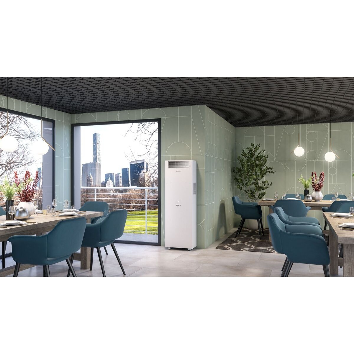 monobloková klimatizace bez venkovní jednotky, funkce Wi-Fi, vertikální design, chladicí výkon 3,1 kW, topení 2,4 kW, dotykový displej, dálkový ovladač, časovač