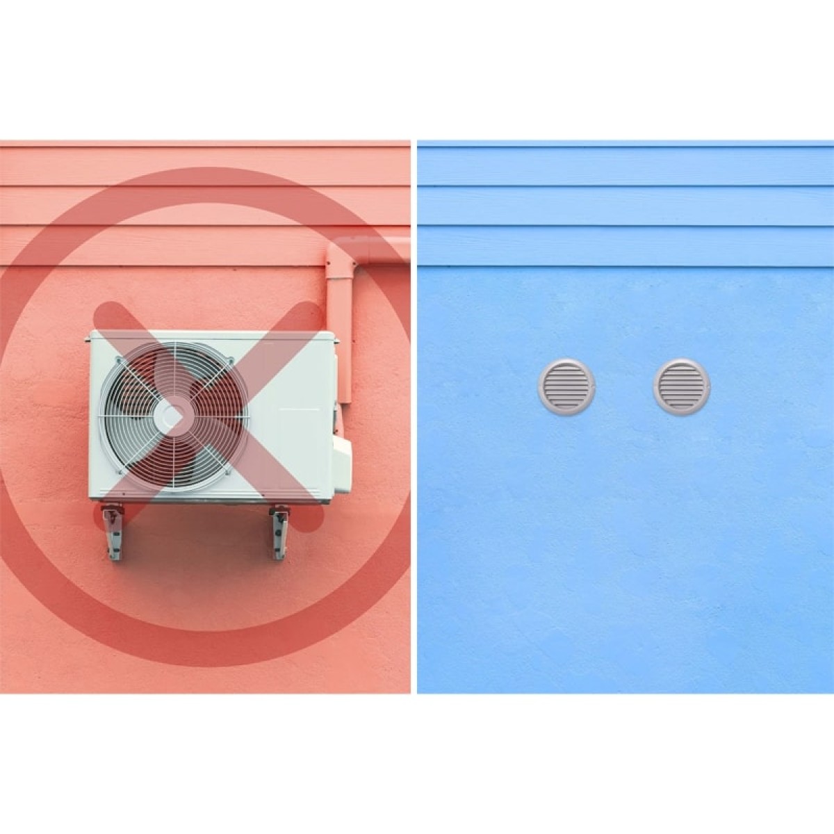 monobloková klimatizace bez venkovní jednotky, chladicí výkon až 3,5 kW, topení 2,8 kW, energetická třída A/A+, tenký design 20,5 cm, zabudovaný Wi-Fi modul, časovač