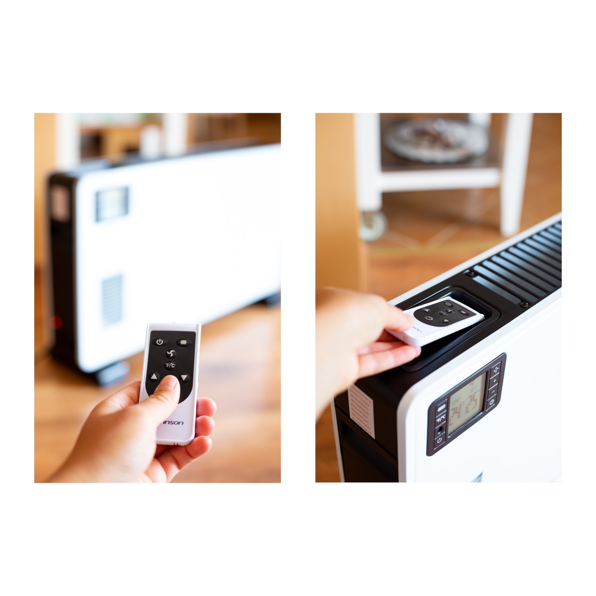 Ovládání R-029 je velmi snadné a intuitivní díky dálkovému ovladači a přednímu LCD ovládacímu panelu, který zobrazuje teplotu a nastavení termostatu současně. Přístroj lze také ovládat pomocí aplikace přes Wi-Fi.