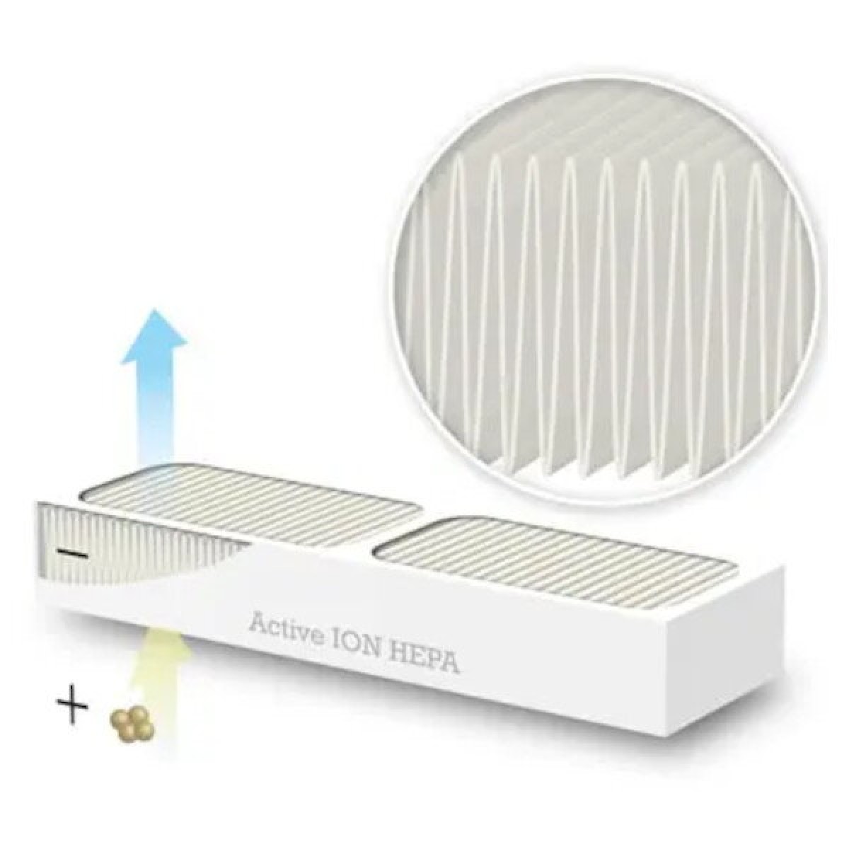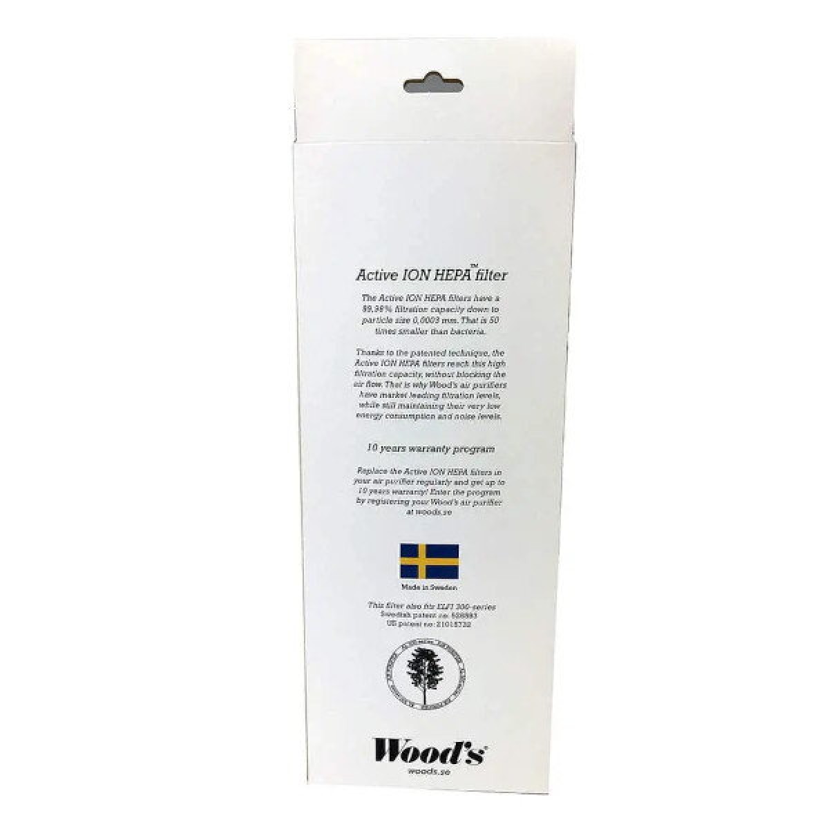 Aktivní ION HEPA filtr skrývá tajemství vysoké kapacity čističky vzduchu Woods, nízké spotřeby energie a nízké hladiny hluku. Filtr je vyroben ze speciálního syntetického materiálu s elektricky nabitými vlákny, která velmi efektivně zachytávají částice ze vzduchu.