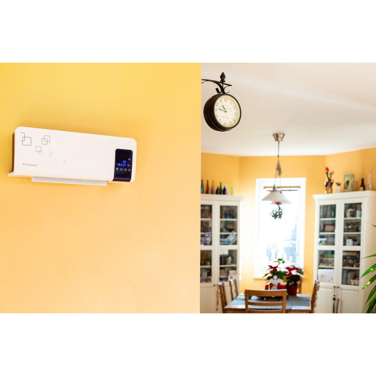 Keramické topidlo Rohnson R-6065, přístroj, který vás zahřeje v chladných dnech. Elektrické topidlo k umístění na stěnu s bezpečnostním keramickým topným článkem.