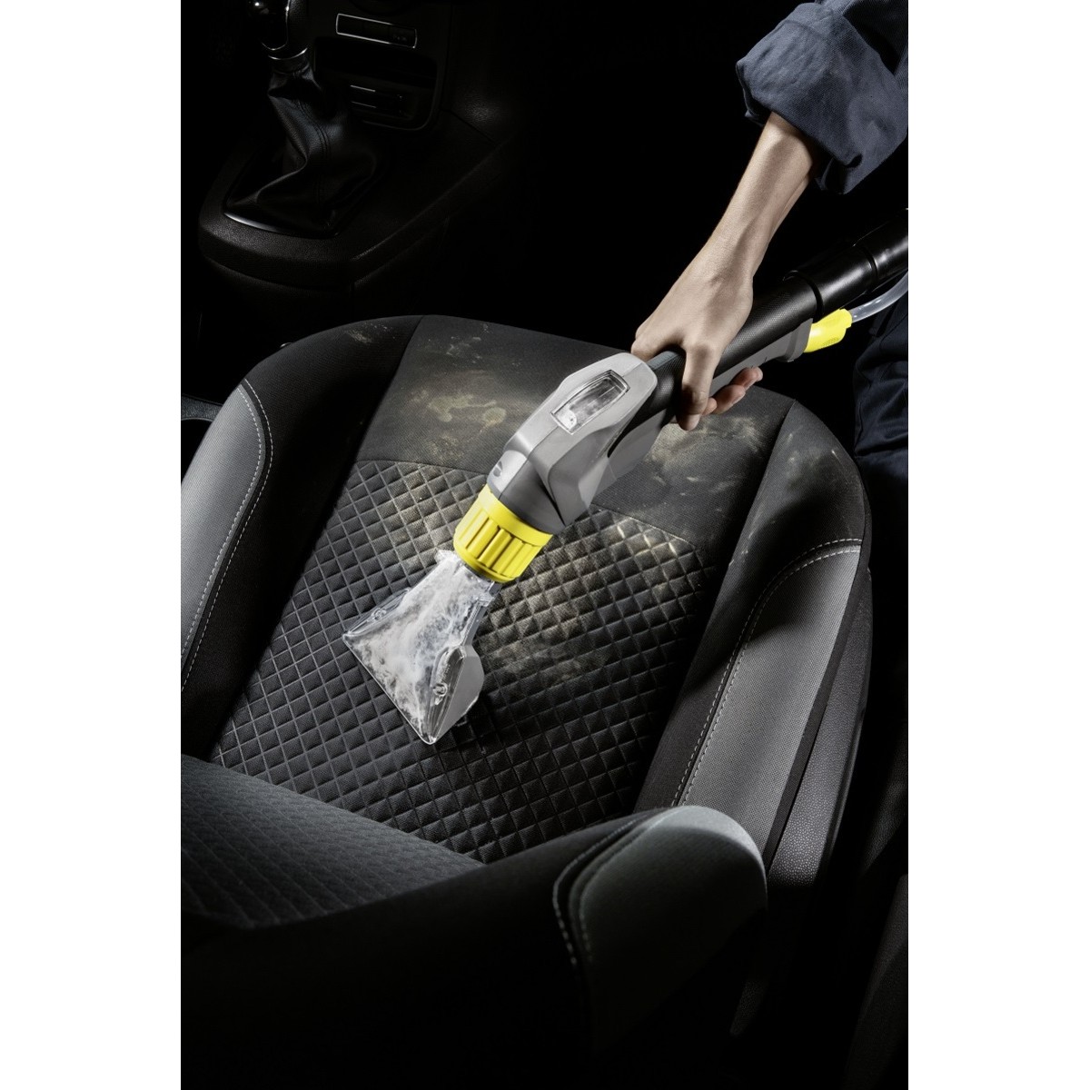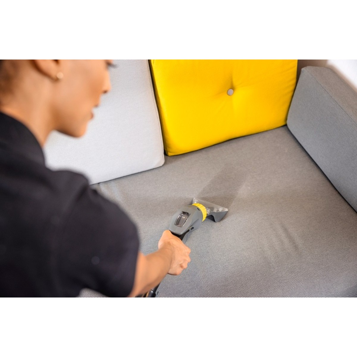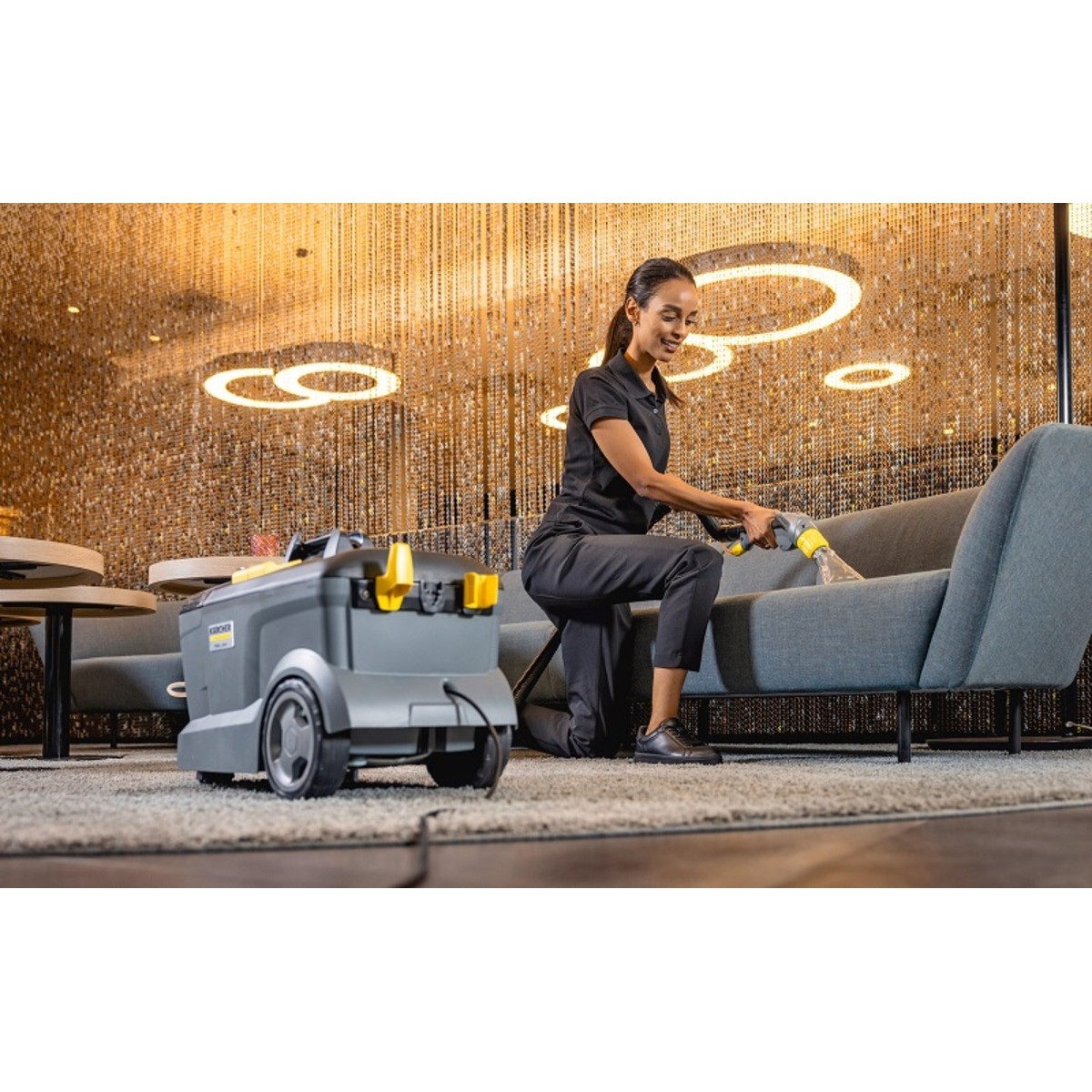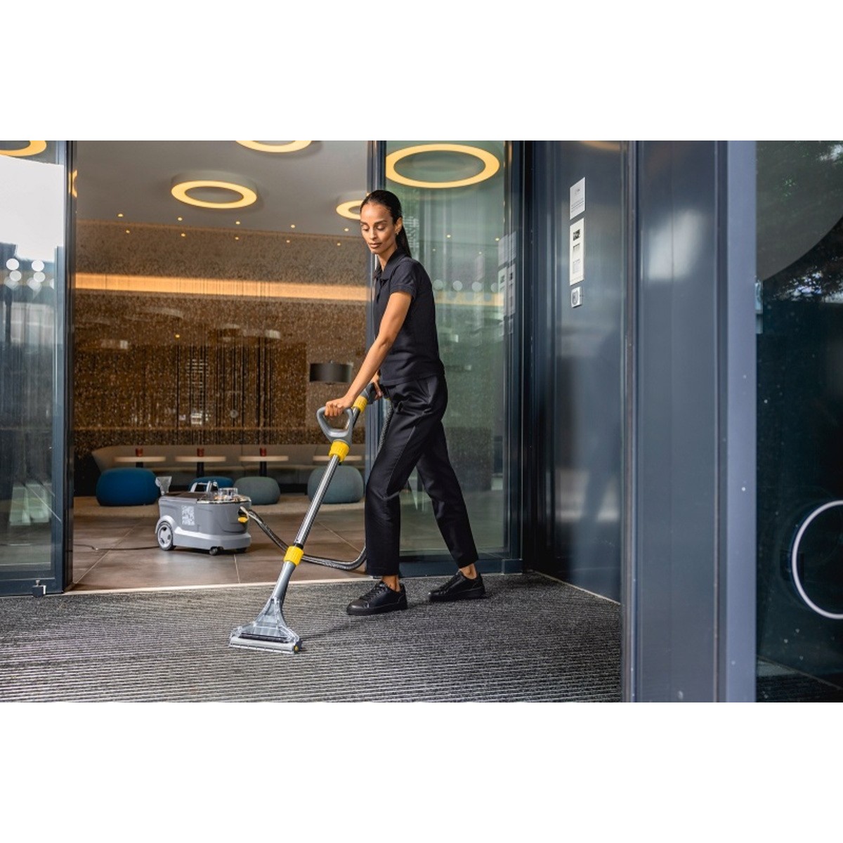 Tepovač Kärcher Puzzi 10/1 je spolehlivý a efektivní pomocník ideální pro mokrý hloubkový úklid menších ploch jako jsou koberce a čalouněné materiály. Díky vyjímatelné nádrži na odpadní vodu a pogumovanému čerpadlu s turbínou nabízí pohodlné a vysoce účinné čištění. Tepovač je navržen pro profesionální i komerční využití v hotelích, kancelářích, školách nebo dalších provozech, kde je potřeba udržovat vysoký standard čistoty. Jeho kompaktní rozměry a nízká váha umožňují snadnou manipulaci a rychlou výměnu příslušenství.