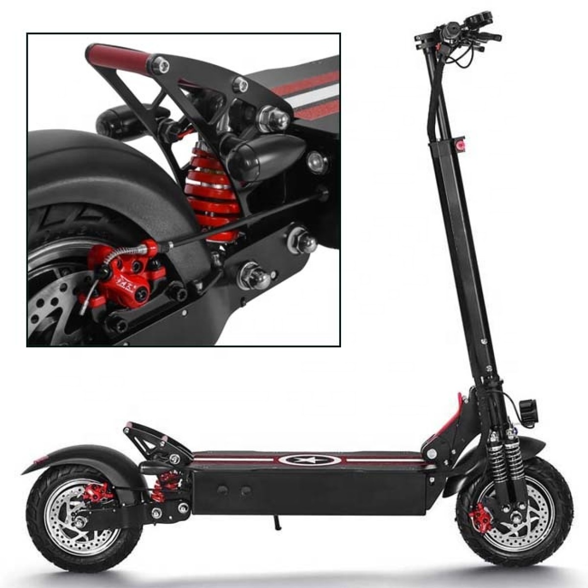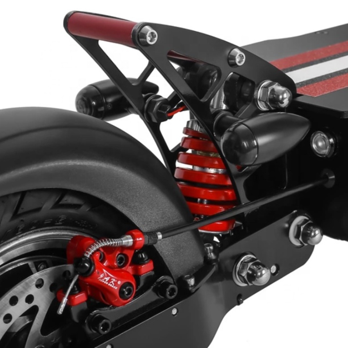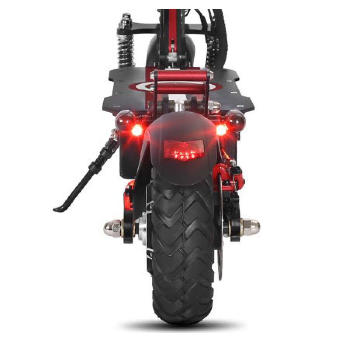 Elektrokoloběžka nabízí více předních a zadních tlumičů. Díky tomu má vynikající výkon v terénu a jízda na nerovné vozovce vám nebude dělat sebemenší problém. Je vybavena také přední odpružení závodní kvality a zadní inovativní systém tlumení uprostřed.