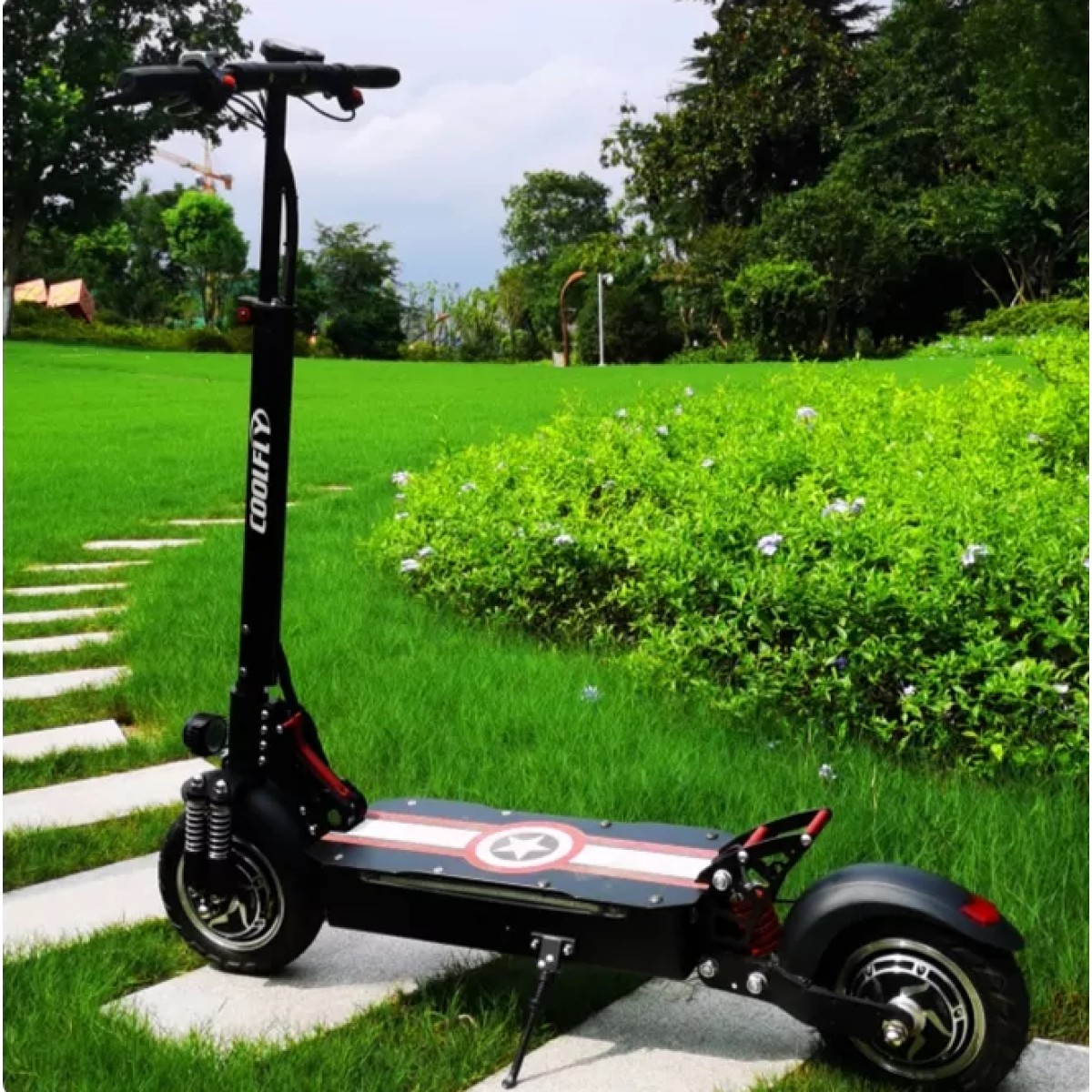 Díky robustnímu systému předního a zadního odpružení je elektrokoloběžka nejen vhodná do náročného terénu, ale také je jízda velmi pohodlná i na běžném asfaltovém nebo betonovém povrchu.