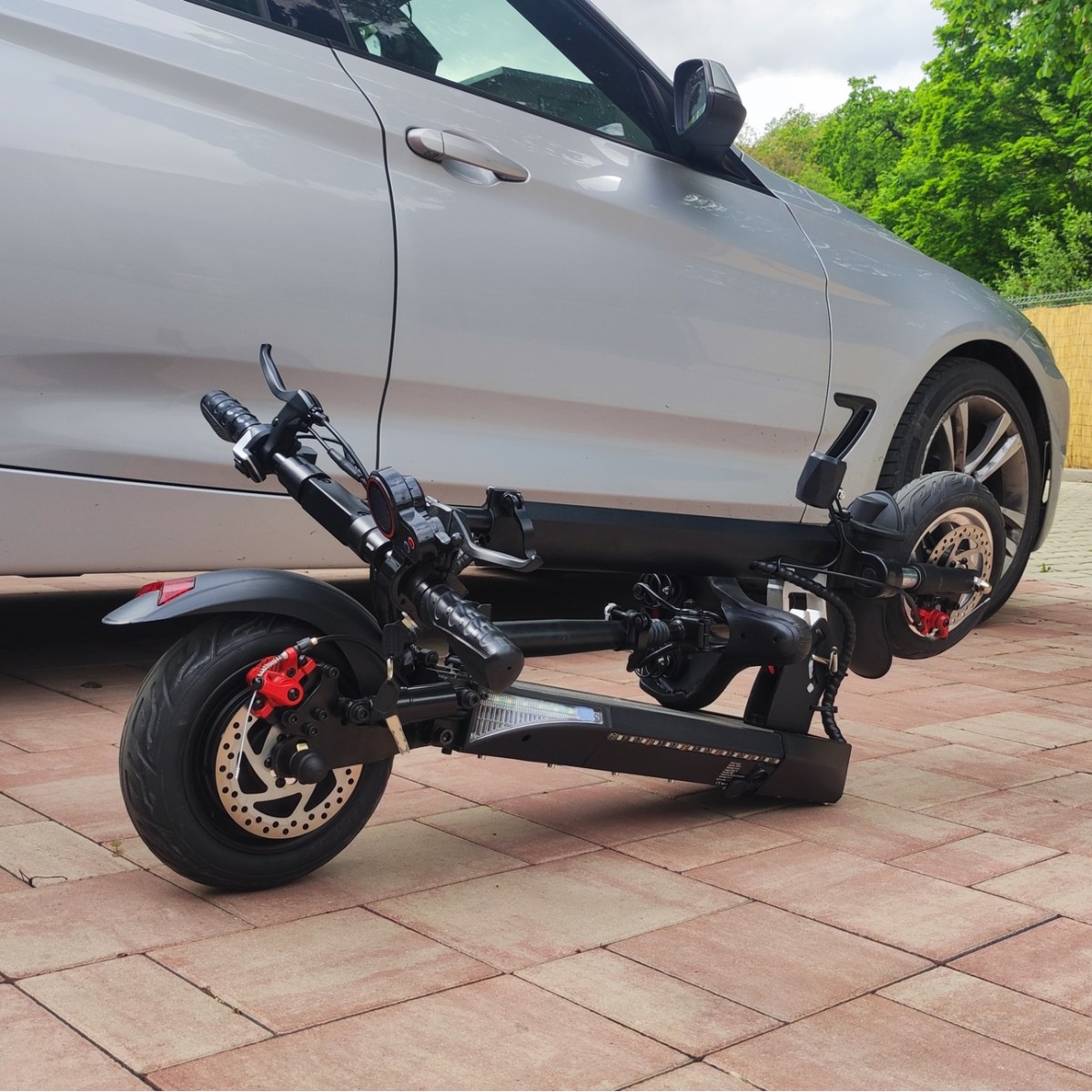Solidní výkon a dojezd, příznivá hmotnost, dobrá skladnost (snadný převoz autem).