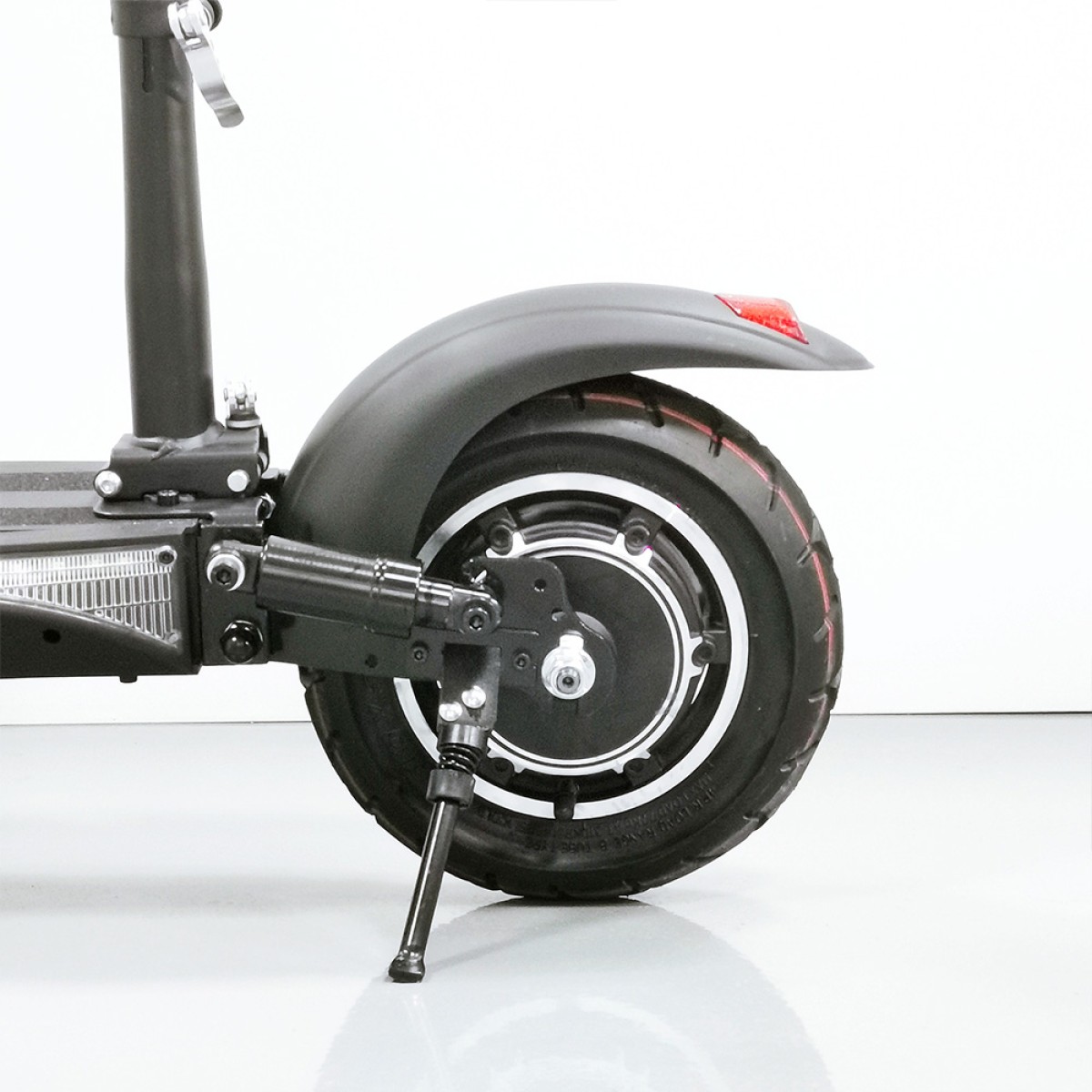 Elektrokoloběžka je vybavena prvotřídní a rozsáhlou výbavou, která zaručuje skvělý komfort a praktičnost. Sedátko elektrokoloběžky je vybaveno odpružením, což poskytuje vynikající pohodlí i při jízdě po nerovném terénu. Navíc je nášlap elektrokoloběžky opatřen neklouzavým gripem, který zajišťuje pevný a stabilní kontakt s nohama jezdce. Tato vlastnost zvyšuje bezpečnost a umožňuje přesnou kontrolu nad elektrokoloběžkou i v náročných podmínkách. Kromě toho je elektrokoloběžka vybavena stojanem, který umožňuje snadné a pohodlné parkování kdykoli a kdekoliv je potřeba.